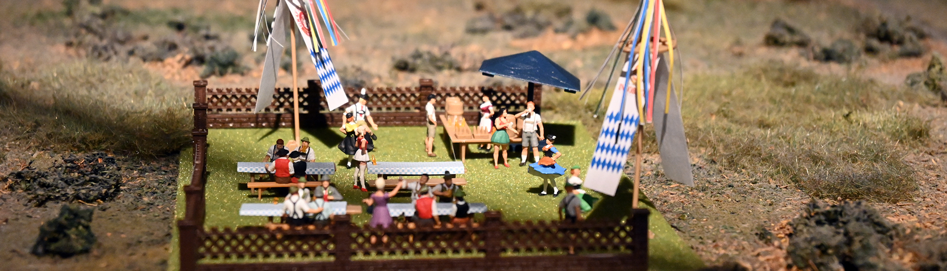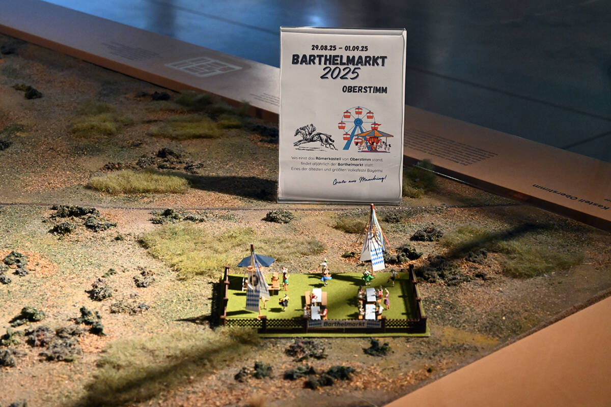 Aus Anlass der Barthelmarkts schmücken wir alljährlich unser Modell des Römerkastells mit der Miniaturausgabe eines bayerischen Biergartens. Und wer ganz genau hinschaut, kann in dem Modell übrigens noch einen anderen modernen Besucher finden.