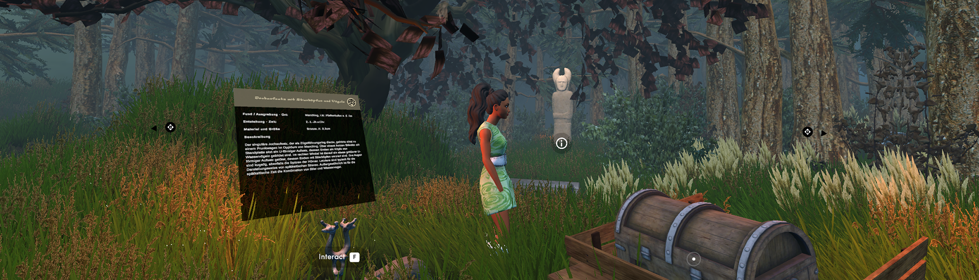 Dabei beleuchtet die Experience Vielfalt und Facettenreichtum keltischer Kunst und Lebensweise. Sie hebt die einzigartige Ornamentik und Stilrichtungen hervor, die aus etruskischen, griechischen und skythischen Einflüssen entstanden sind. Beeindruckende figürliche Darstellungen, typisch für die damalige Zeit, finden ebenso Eingang ins Spiel wie Tierwesen und mythische Motive. Die Nutzerinnen und Nutzer erhalten somit einen umfassenden Einblick in die Welt der Kelten, in deren religiös-mythische Bedeutungen und in die vielschichtige Symbolik ihrer Kunst.
