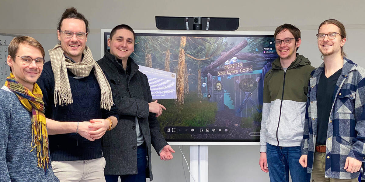 Die virtuellen Exponate wurden von der Archäologischen Staatssammlung bereitgestellt, während die übrigen Visualisierungen größtenteils von den Studierenden selbst erstellt wurden. Das interdisziplinäre, engagierte Team aus Md Zunaed Alam Tanim, Paul Lakos, Bruno Müller, Oscar Pohl, Lars Skogseide und Charlotte Paulsen wurde während des Projektes wissenschaftlich von Dr. Brigitte Haas-Gebhard und Dr. Holger Wendling von der Archäologischen Staatssammlung betreut. Julian Hölgert und Michael Gödde sind stolz auf ihre Studierende: »Sie haben unter extrem knappen Zeitbedingungen einen tollen Job gemacht! Die Zusammenarbeit mit einem echten Kunden ist für alle Beteiligten eine Win-Win-Situation.«