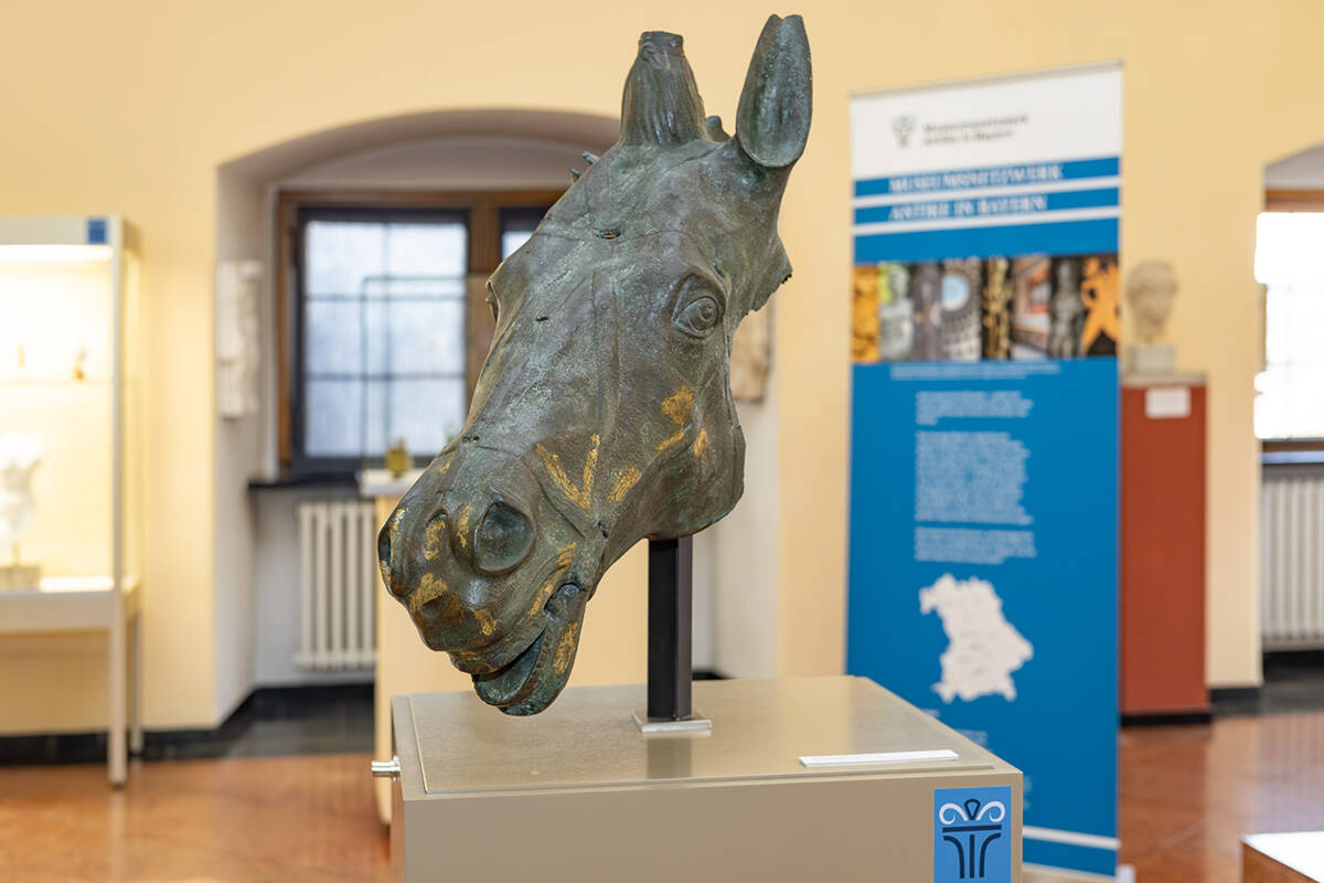 Die Replik eines bronzenen Pferdekopfes aus Augsburg ist das Highlight der Ausstellung.