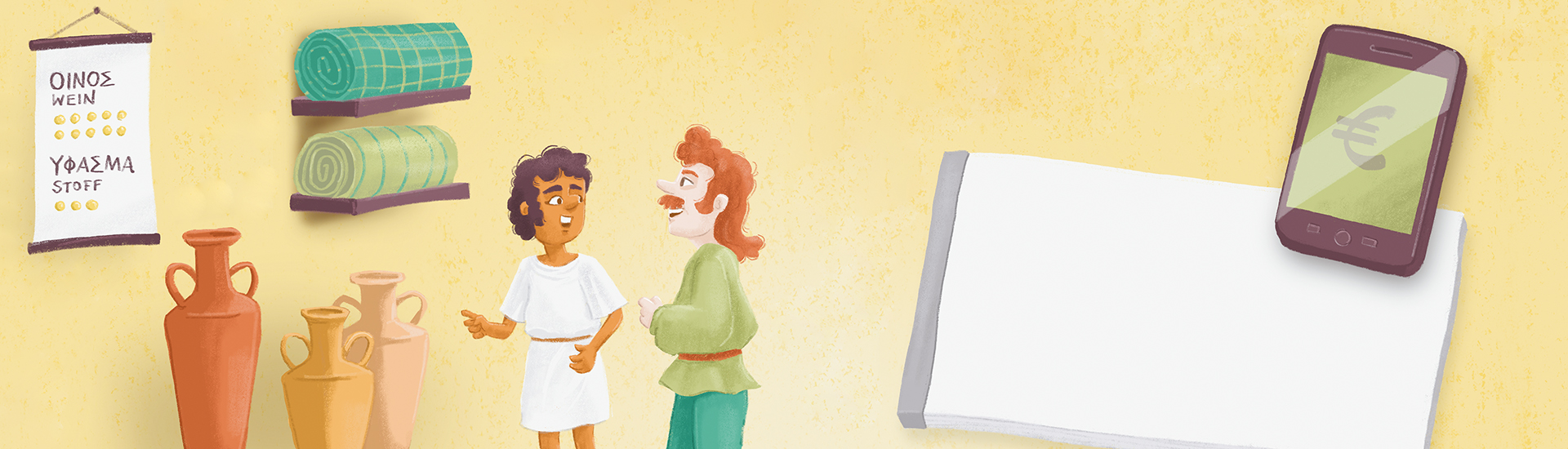Hinzu kommen eine Lehrkräftehandreichung, Material für die Objektbeschriftung der Repliken sowie sechs Ausstellungsplakate in DIN A1. Die Plakate wurden liebevoll und kindgerecht von Dorothea Blankenhagen illustriert und können von den Schüler:innen mit eigenen Texten und Zeichnungen vervollständigt werden.