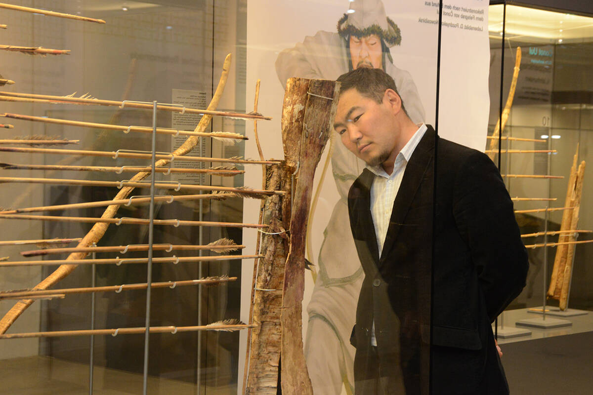Zu den Ausstellungsobjekten zählten einzigartige Objekte aus der Mongolei. Dank des trockenen und kalten Klimas haben sich selbst Funde aus organischen Materialien nahezu unversehrt erhalten: Textilien, lederne Sättel, hölzerne Bögen, Pfeile mit Befiederung und Köcher aus Birkenrinde.