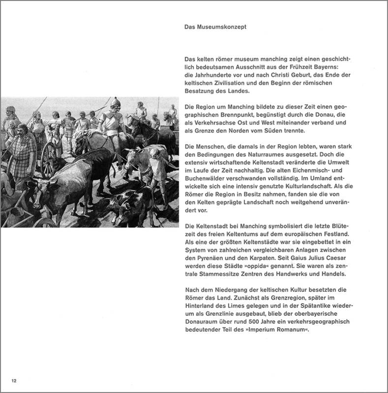 Das kelten römer museum manching ist das Schaufenster für die spektakulären Funde aus der Keltenstadt von Manching und aus dem Römerkastell von Oberstimm. Das moderne Museumsgebäude wurde nach einem Entwurf von Fischer Architekten (München) errichtet und am 2. Juni 2006 für den Publikumsverkehr eröffnet. Für die Planung der Außenanlagen zeichnete die Landschaftsarchitektin Anna Zeitz (München) verantwortlich.